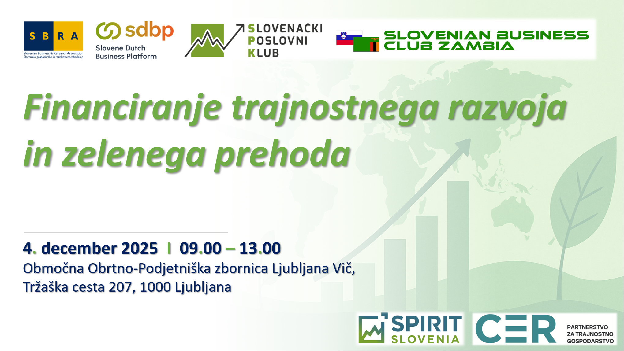 Trajnostni razvoj že dolgo ni več zgolj fraza, temveč resničnost, ki usmerja gospodarske in družbene tokove. Lahko rečemo, da predstavlja eno izmed ključnih prioritet Evropske unije.Zato smo slovenski poslovni klubi iz Belgije, Nizozemske, Srbije in Zambije pripravili kratko poslovno srečanje, namenjeno razpravi o tej pomembni temi. Tokrat pa ne bomo govorili o trajnostnih projektih kot takih, temveč o njihovem financiranju. Poleg nepovratnih evropskih sredstev, s katerimi se intenzivno ukvarja Slovenski poslovni klub v Bruslju, bomo posebno pozornost namenili bančnemu financiranju, povezani regulativi, pogojem in izkušnjam iz prakse. O tematiki ne bodo spregovorili le predstavniki bank, temveč tudi podjetja, ki se s tem vsakodnevno soočajo. Na dogodku bomo na kratko predstavili tudi t. i. zelene obveznice, ki postajajo vse pomembnejši instrument trajnostnega financiranja.